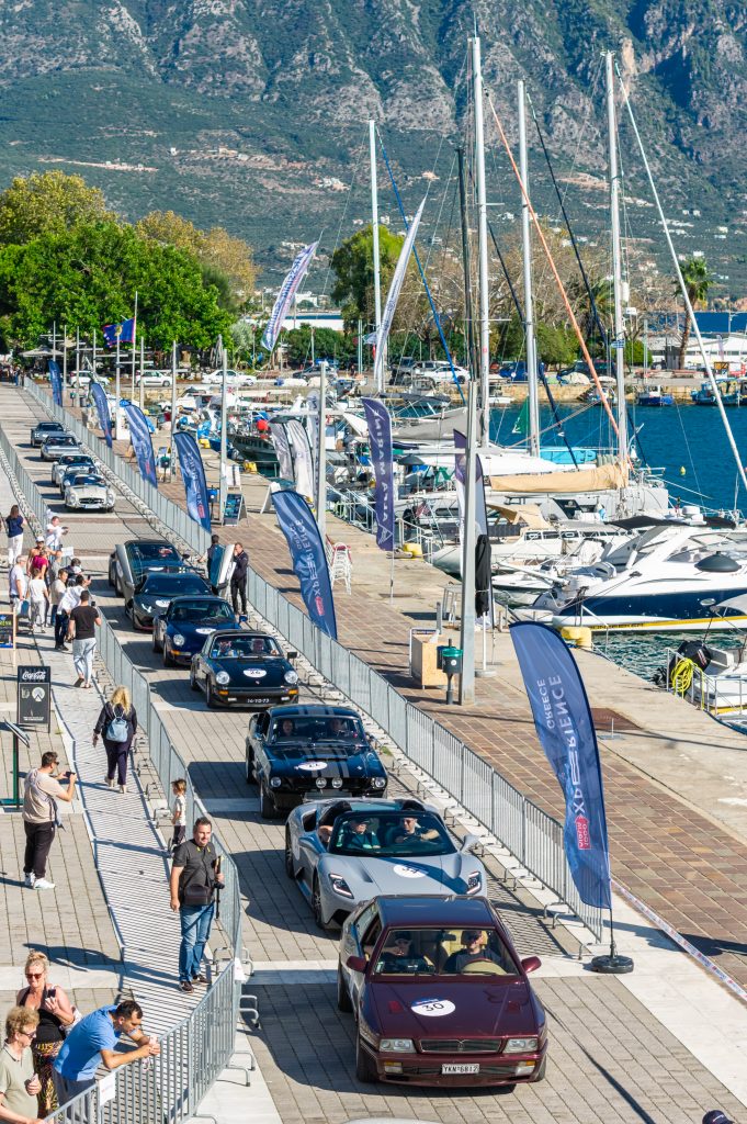 Am dritten Fahrtag rückt die Küste stärker in den Mittelpunkt — und mit ihr jene lässige Eleganz, für die Griechenland so geschätzt wird. Die Etappe nach Porto Heli verbindet sportlich reizvolle Streckenführung mit mediterraner Leichtigkeit: kurvige Abschnitte, wechselndes Licht, Ausblicke aufs Wasser und genau die Art von Asphalt, auf der ein klassischer Grand Tourer besonders stimmig wirkt. Ein besonderer Kontrast dazu ist der Mittagsstopp mitten in den Bergen auf dem Weg nach Porto Heli. In ruhiger, ursprünglicher Umgebung bietet er die ideale Gelegenheit, kurz durchzuatmen, Eindrücke zu sortieren und die Strecke bis hierhin Revue passieren zu lassen — fern der Küste, aber mit genau jener authentischen Atmosphäre, die diese Route so besonders macht. Mit der Weiterfahrt Richtung Argolischer Golf kehrt dann das maritime Griechenland zurück. Porto Heli selbst gilt als elegante Küstenadresse und bringt stilvolles Seeflair in die Rallye, ohne ihren sportlichen Charakter zu verlieren. Das AKS Hotel Porto Heli ergänzt diesen Stopp mit entspanntem Resort-Stil und einer Lage, die Meerblick und Ausklang auf sehr griechische Weise zusammenführt.