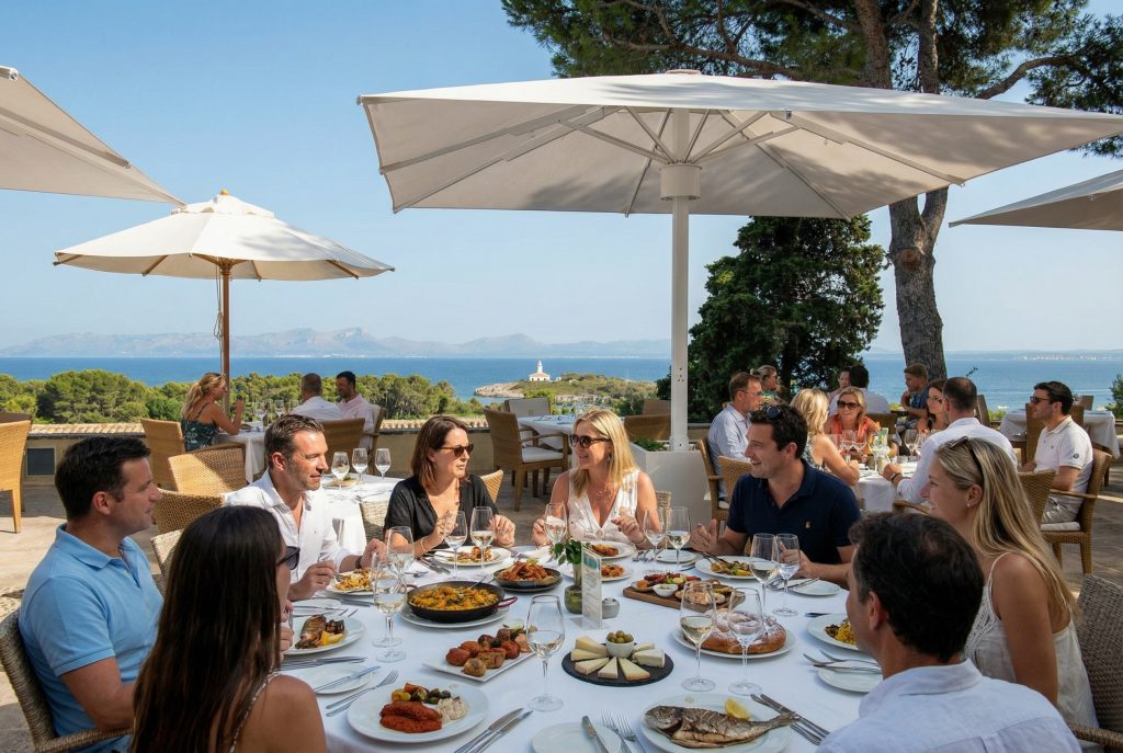 Ob mit dem eigenen Fahrzeug per Fähre oder ganz entspannt per Flugzeug: Ihre Reise beginnt so unkompliziert, wie ein gelungener Auftakt sein sollte. Auf Wunsch organisieren wir den Shuttle vom Flughafen oder holen Sie direkt an der Fähre ab, bevor es in den Nordosten der Insel nach Canyamel geht. Dort erwartet Sie das Cap Vermell Grand Hotel, ein luxuriöses Hotel im Stil eines mallorquinischen Hügeldorfes. Beim Check-in wartet bereits ein Begrüßungsgetränk, und spätestens beim ersten Blick über die Terrassen fällt der Anreise-Staub endgültig von den Schultern. Canyamel selbst war einst mehr Rückzugsort als Bühne, und genau das spürt man noch heute: weniger Show, mehr Atmosphäre. Am Abend treffen wir uns zum gemeinsamen Dinner im Hotel – mit guten Gesprächen, feiner Küche und der leisen Vorfreude auf die kommenden Tage.
