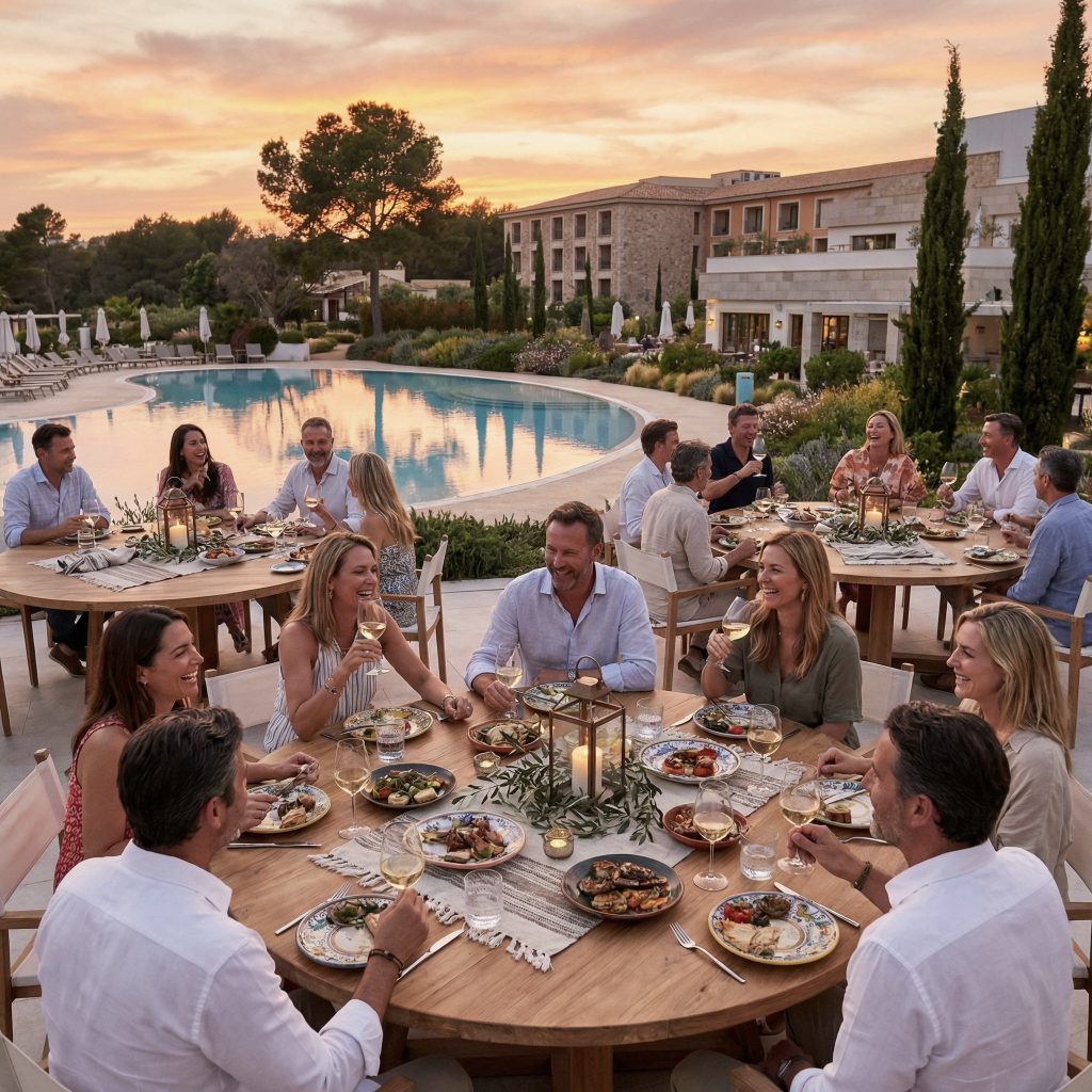 Ob Sie per Fähre mit dem eigenen Fahrzeug ankommen oder per Flugzeug einfliegen: Sie starten entspannt in Ihre Woche auf Mallorca – auf Wunsch organisieren wir den Shuttle vom Flughafen oder holen Sie direkt an der Fähre ab. Im Cap Vermell Grand Hotel in Canyamel im Nordosten der Insel, wartet ein stilvoller Rückzugsort, der sich wie ein luxuriöses Dorf in die Hügellandschaft schmiegt – elegant, ruhig, mit viel Raum zum Durchatmen. Beim Check-in gibt’s einen herzlichen Empfang inklusive Begrüßungsgetränk. Am Abend treffen wir uns zum gemeinsamen Dinner im Hotel – erste Geschichten, erste Pläne, erste „Morgen fahren wir aber wirklich erstmal ganz entspannt“-Versprechen.