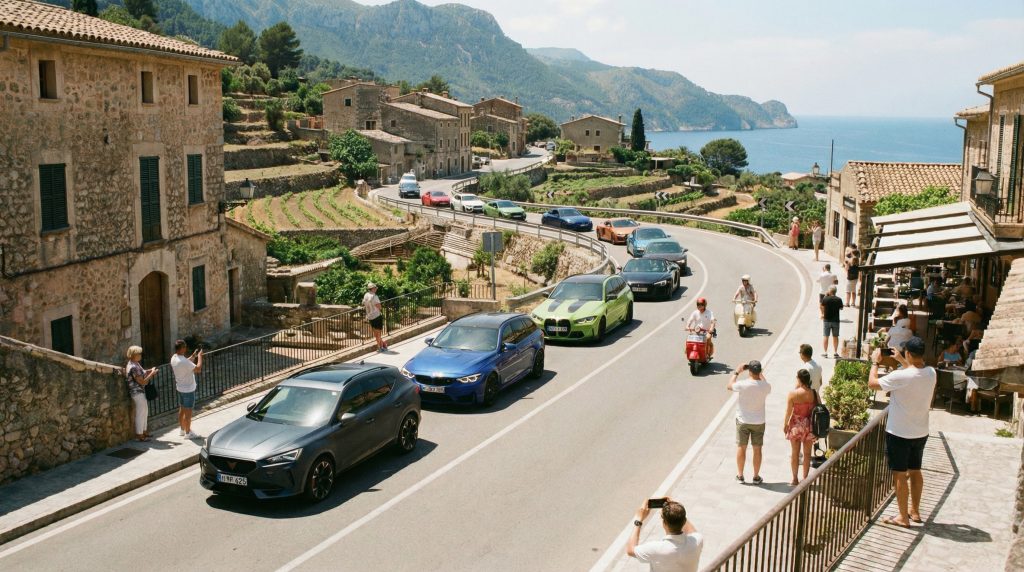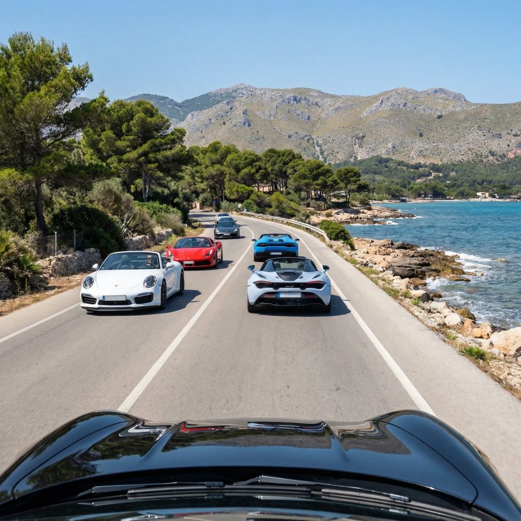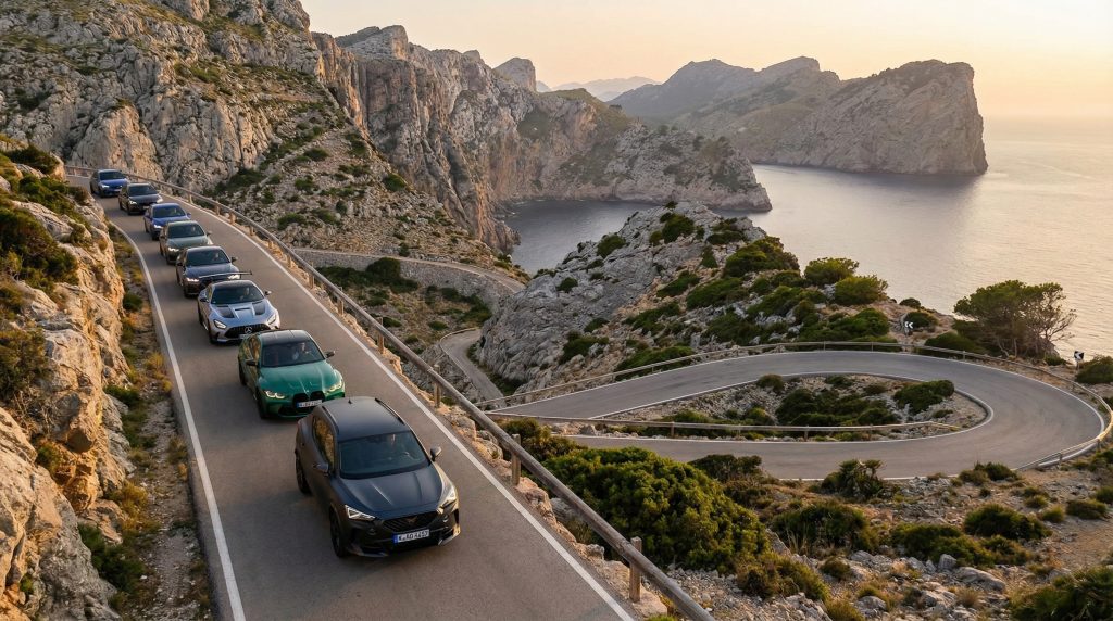 Mallorca, wie es Autofahrer lieben: Küstenluft, goldenes Licht – und dann hinein in die Serra de Tramuntana, wo Kehren und perfekte Linien den Puls treiben. Sportlich-dynamisches Fahren trifft auf Inselatmosphäre, Panoramen und mediterranen Genuss.